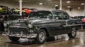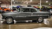 We are pleased to offer this 1955 Chevrolet Bel Air, a classic Tri-Five Chevy showing 5,904 miles on the odometer. Powered by a 283ci V8 paired with a 3-speed manual transmission, it delivers the engaging driving experience enthusiasts love. This Bel Air has been upgraded with front disc brakes for improved stopping power while maintaining its vintage character. Finished in a tasteful gray exterior over a beige interior, it presents a timeless and elegant look. A well-kept example…