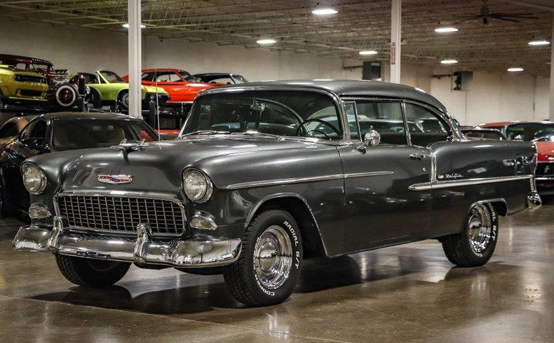 We are pleased to offer this 1955 Chevrolet Bel Air, a classic Tri-Five Chevy showing 5,904 miles on the odometer. Powered by a 283ci V8 paired with a 3-speed manual transmission, it delivers the engaging driving experience enthusiasts love. This Bel Air has been upgraded with front disc brakes for improved stopping power while maintaining its vintage character. Finished in a tasteful gray exterior over a beige interior, it presents a timeless and elegant look. A well-kept example of Chevrolet’s iconic Bel Air, ready for cruising or display at local shows.