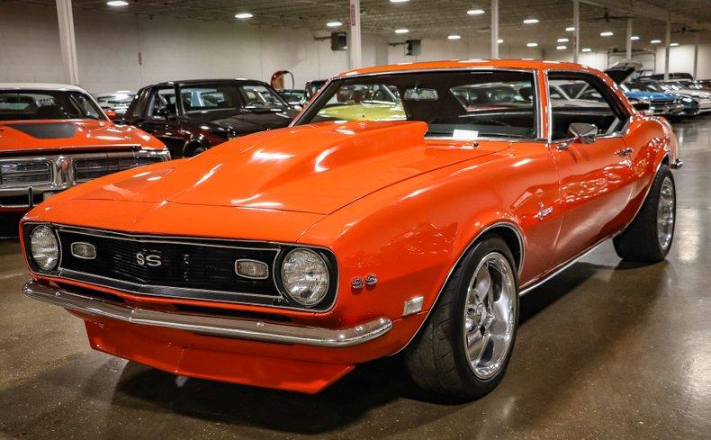 We are pleased to offer this 1968 Chevrolet Camaro SS, a professionally built street machine powered by a L88 427ci V8 paired with a TH400 automatic transmission. Finished in Hugger Orange over a black interior, this Camaro has traveled just 1,500 miles since its full restoration. Performance highlights include Hotchkis suspension, MSD ignition, Holley carburetor, Flowmaster exhaust, and Boyd Coddington wheels for an aggressive stance and modern drivability. Originally finished in Teal Blue, the car now presents with…