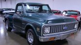 We are pleased to offer this Chevrolet C10 Stepside Pickup, finished in Metallic Dark Green with timeless vintage styling. Power comes from a 350ci V8 transplanted from a 1971 El Camino with a 4-barrel carburetor rated at 250 horsepower, paired with an automatic transmission. The interior has been refreshed with a new vinyl bench seat, new headliner, tilt steering column, and retro-style radio with digital upgrades, while the classic gauges and dash remain in excellent condition. Cleanly presented…