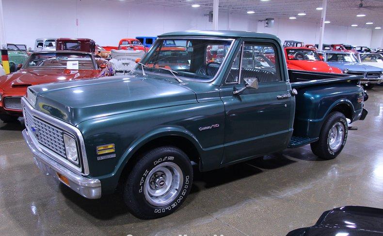 We are pleased to offer this Chevrolet C10 Stepside Pickup, finished in Metallic Dark Green with timeless vintage styling. Power comes from a 350ci V8 transplanted from a 1971 El Camino with a 4-barrel carburetor rated at 250 horsepower, paired with an automatic transmission. The interior has been refreshed with a new vinyl bench seat, new headliner, tilt steering column, and retro-style radio with digital upgrades, while the classic gauges and dash remain in excellent condition. Cleanly presented under the hood and mechanically sound, this truck is ready to drive and enjoy. A well-kept classic pickup with enduring charm, perfect for weekend cruising, local shows, or as a stylish shop truck.