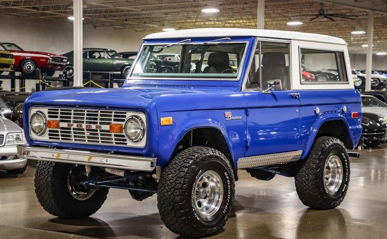 We are pleased to offer this 1973 Ford Bronco, showing 95,061 miles and owned by the same enthusiast for the past 11 years. Power comes from a dependable 302 V8 paired with a 5-speed manual transmission, combining vintage charm with improved drivability. Finished in blue with a white hardtop, it also includes two additional soft tops for open-air versatility. Recent updates such as a new wiring harness and new gas tank add to its reliability. A solid and well-kept classic, this Bronco is ready for its next adventure on or off the road.